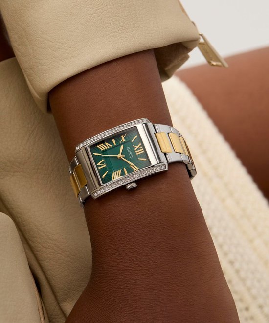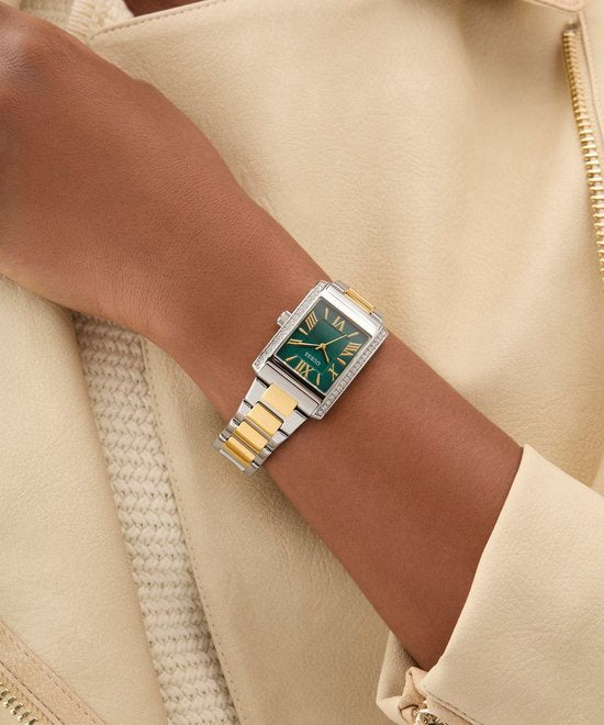 - Stainless steel strap, silver and gold colored coating, polished, folding clasp